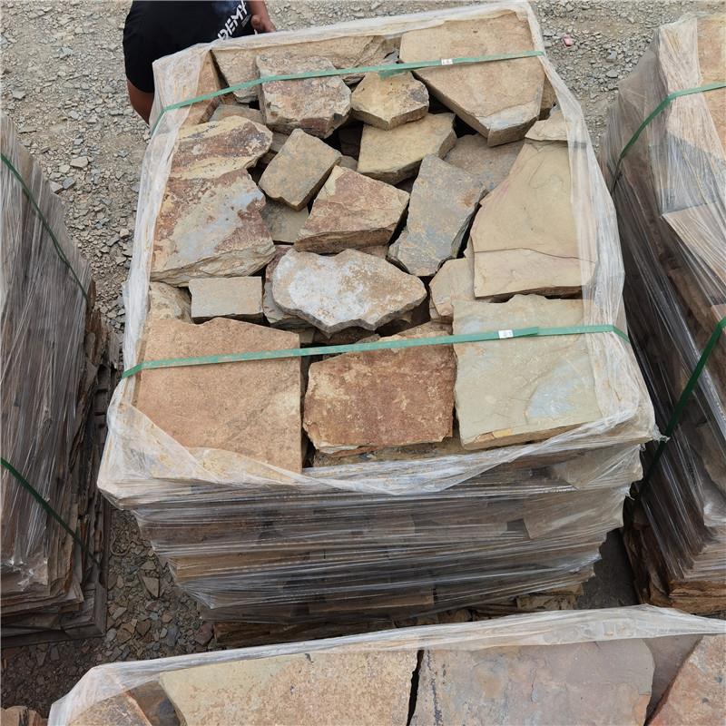黄色文化石 黄木纹石材 黄木纹文化石锈色文化石 黄砂岩文化石 暖色系文化石 暖黄色文化石 黄色板岩文化石 乱型文化石 黄色板岩片石 虎皮黄文化石不规则文化石作为一种经典的建筑建材,无论是在老街道还是在庭院里,建筑外墙以及其它的地方,它有着自然不规则的特点,瞬间让人释放压力,虽然看起来有点凌乱但组合后给人以无穷的想像。现在很多从事艺术行业的人都喜欢用石头来装修房子,碎拼石自然天成的颜色搭配。满足现代人对个性和时尚的追求。碎拼石拥有一种非凡的层状板理,它的纹理错综复杂线条流畅,石质细腻密凑,满足各位小主对大自然向往之心,碎拼石是一种天然的园林绿化工程用石,其形状多变不规则,也叫乱形石 片石。因没有经过多加工,所以边缘都是毛边,也被人们称为毛边石碎拼石,石料从山上开采下来,经过人工敲打成薄厚不同的片状,厚度不同价格也不同,越薄越贵越厚越便宜,一般规格3-5公分一个价位,5-8公分一个价位,还有8-15公分以上的。您可根据自己的工程需求定制合适的规格