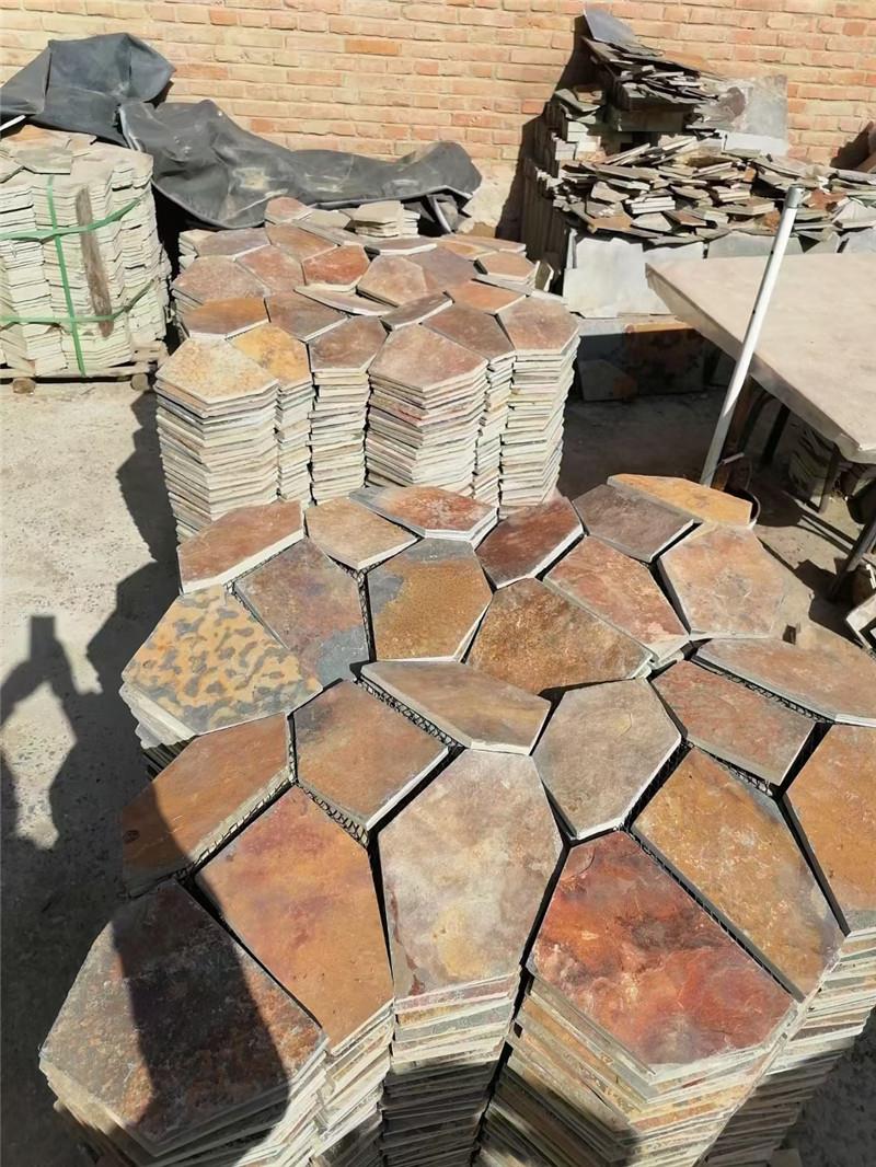 碎拼石又名(乱型板,乱型石)是一款不规则的多边形的片石石材,石材硬度高,不易断裂,无规则铺设,施工方便简单,颜色天然多变,表面自然平整度较好,且有一定的防滑作用,锈色文化石 虎皮黄乱型石 地面文化石 公园铺路片石 户外文化石大量用于古城、小镇、园路、广场,别墅,步行路,等各种场所地面及墙体的复古美化 装修,施工简单易学,乱形板如果适用于墙体的情况下,可以用水泥或者其它加固美缝材料做勾缝处理,地面施工情况下,山体路的话及建议水泥灌缝,尺寸不规则碎拼组合后从视觉上类似于冰裂纹,其区别在于它的不规则性,和华丽的都市街景相比,又是一种别有风趣的美