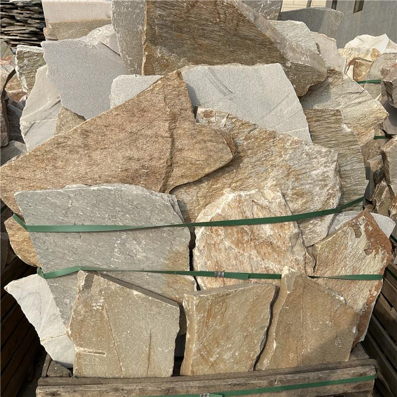 不规则页岩文化石 虎皮石贴面石材 天然毛面文化石 天然乱石片厂家 黄色毛边文化石因其形态自然,无规则铺设,又被命名为(乱行石 乱型板 乱型石 乱形石 乱形板),碎拼石根据其产地和材质的不同,颜色较为多元化,大体分为,青,红,黄,粉, 蓝,灰,白,自然碎拼石其没有经过人工的补色,所以拥有一定的色差,这一点是不可避免的常态,地铺碎拼石按材质分为四种(1)板岩碎拼石,黄色围墙文化石 锈色板岩碎拼石 黄木纹文化石 虎皮石地面碎拼石其层理分明,层理类似于页岩,层与层之间分隔薄如纸片,因其容易分层,所以加工片石难度较小,板块规格较大,常规板面直径在30-50公分之间,板岩碎拼石外表平整度较好,因其得自然层理特征,众多施工商将板岩碎拼石运用于不同的环境装饰工程之中,因其坚硬度一般,较薄的板岩碎拼石主要用于公园园林,古城,别墅,豪华营业场等各种场景的墙体建设,外表色泽自然多变,按颜色主要分类为锈色板岩碎拼石 黄色毛石贴面石材 黄色碎拼石 黄色碎拼石厂家,因产地不同,坚硬度和色泽都有不同的区别(2)砂岩碎拼石,砂岩碎拼石,其外表色泽较为一致,平整度好,石材密度高于板岩,按颜色为不规则片石片岩 虎皮黄乱形石 黄色板岩铺地片石 黄色文化石片岩,石材坚硬度高,层理分辨程度不及板岩,但砂岩碎拼石其色泽由内而外,表里如一,是很好的片状园林板材,砂岩碎拼石板面直径大约在25-40公分之间,因石材厚度不同,板块大小也不同,厚度越小,加工难度越大,其断裂机率越高,所以厚度越高的砂岩碎拼石它的板面直径就会越大(3)花岗岩碎拼石,其石材坚硬度高,为点状颗粒状花色外表,其石质没有明确的层理分辨,大都是经过机器切割加工成为不同规格的碎拼石,按颜色分类为,黄木纹乱型石 景观墙面文化石 不规则片石碎拼石 虎皮黄文化石 黄色板岩冰裂纹碎拼石(4)石英岩碎拼石,石英岩碎拼石石材硬度高,层理分辨度不及板岩,故其加工难度高于板岩,按颜色分类为暖黄砂岩文化石 黄木纹片岩碎拼石 古堡石文化石 园林地铺片石碎拼石的硬度高,吸水较低,可以作为建筑材料,特别是用做户外用石,像是铺路石,地板,覆层等等,特别是纯色的石英石,由于石英岩独特的晶体结构,使其呈现出缤纷华丽而又独特的颜色及纹理,有特殊的装饰效果,现代园林景区建筑风格在多姿多彩不断的变化,因此,对装饰用碎拼石也要求多品种、多花色,能配套用于建筑物的不同部位。