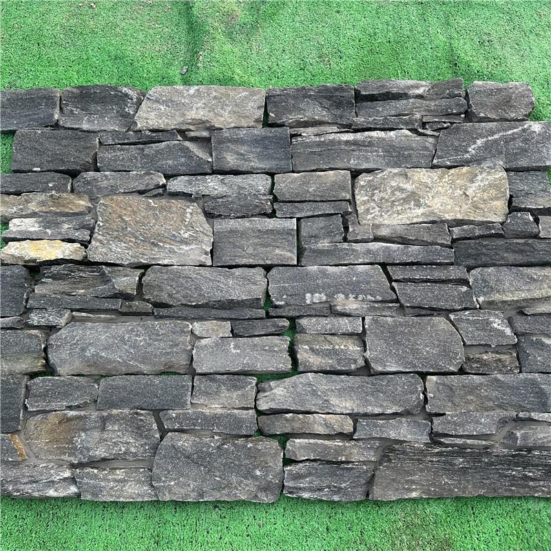 绿色文化石墙面砖 天然铺地片石 灰色文化石背景墙 毛石景观挡土墙