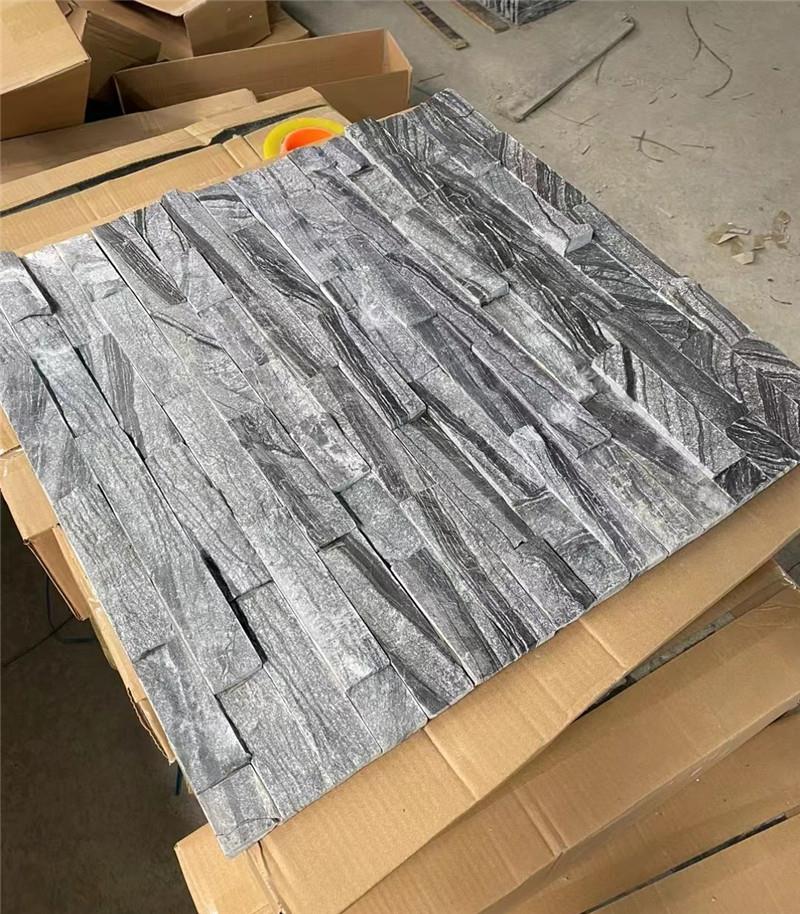 简约线条背景墙 灰色板岩碎拼石 绿石英文化石 天然乱石片