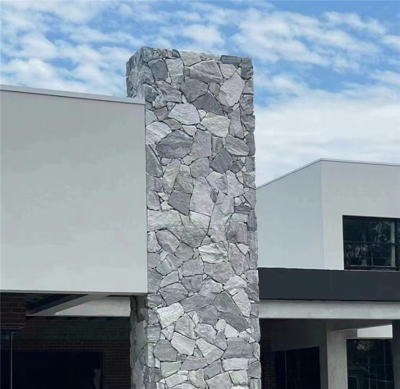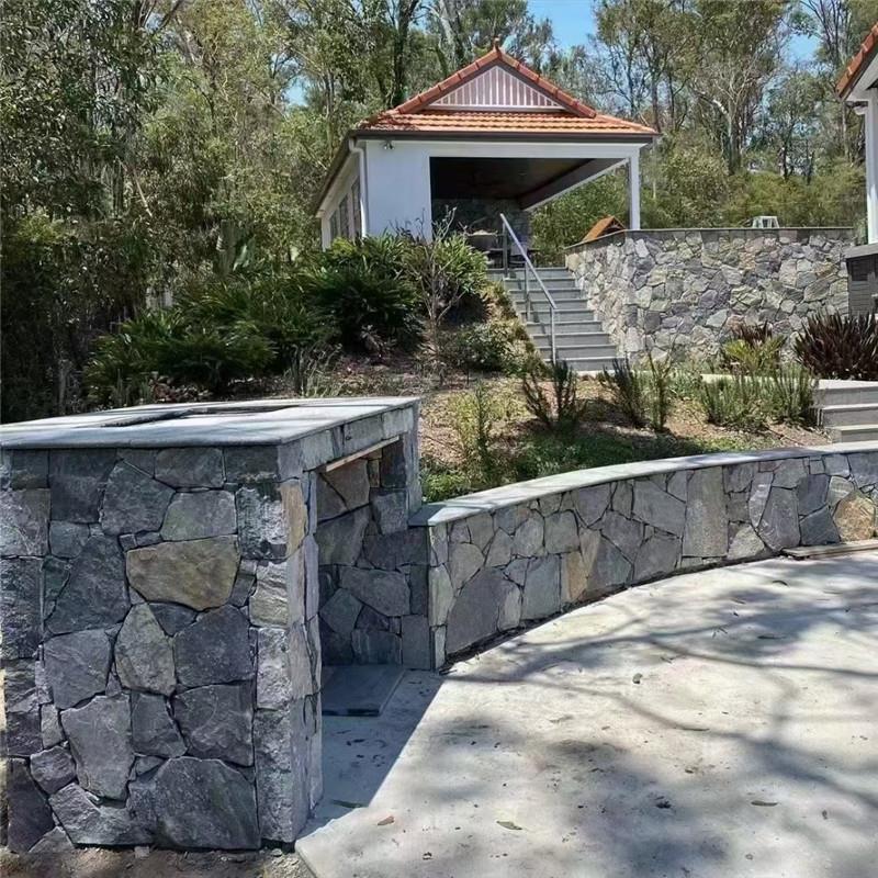 青色蘑菇石原石景墙 外墙面贴片石碎拼石 青灰色自然面文化石 青石板乱形石