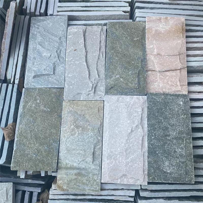 绿色文化石墙面砖 天然铺地片石 灰色文化石背景墙 毛石景观挡土墙有着天然纹理,更有层次感,由于长时间埋于地下经年风霜,面层比一般的花岗岩石皮更有质感,宛如加持历史的涂层,温婉圆润,做流畅弧形切割加工,对缝拼接安装,写意随形,呈现天作的美感,可应用在弯曲唐风日式小径铺贴。有别于常规石材切边方式,简约线条背景墙 灰色板岩碎拼石 绿石英文化石 天然乱石片采用不规则弧形线条,施工拼接对缝,营造自然原始景观。让您置身自然回归田野,让心灵得到放松,碎拼石又叫乱形板,不会每个料一模一样,都是天然润色,青色蘑菇石原石景墙 外墙面贴片石碎拼石 青灰色自然面文化石 青石板乱形石颜色要求不能太,同一批次可以挑一个色系的,不同批次的不能像大理石一样用色卡去规定。天然色差让装饰更有视觉效果。仿古文化石外墙砖 不规则片石片岩 灰色蘑菇石贴面 外墙贴片石碎拼石 尺寸每块成品控制在200mm-800mm以内,规格超大需要提前定制加工,增加成本。常规厚度有2-4、3-5、5-8、8-12公分厚左右,特别厚度需要定制