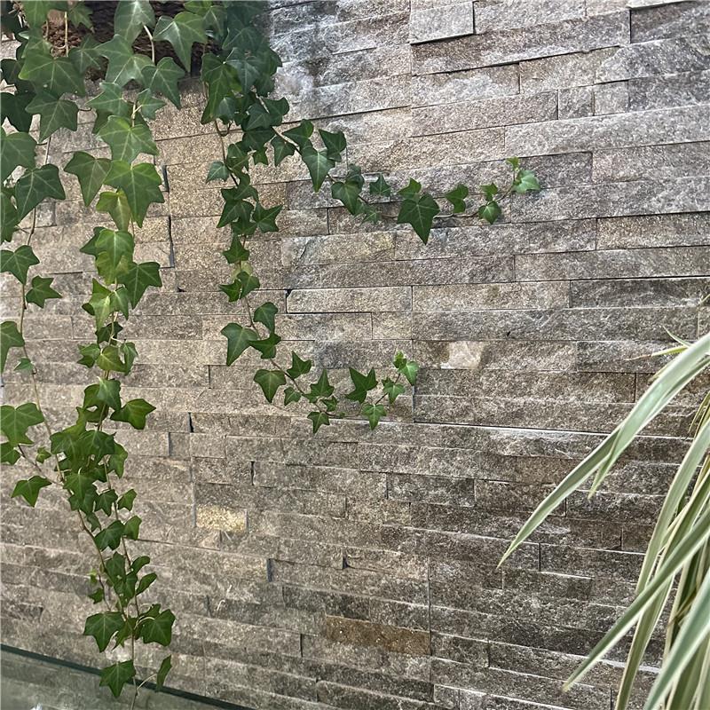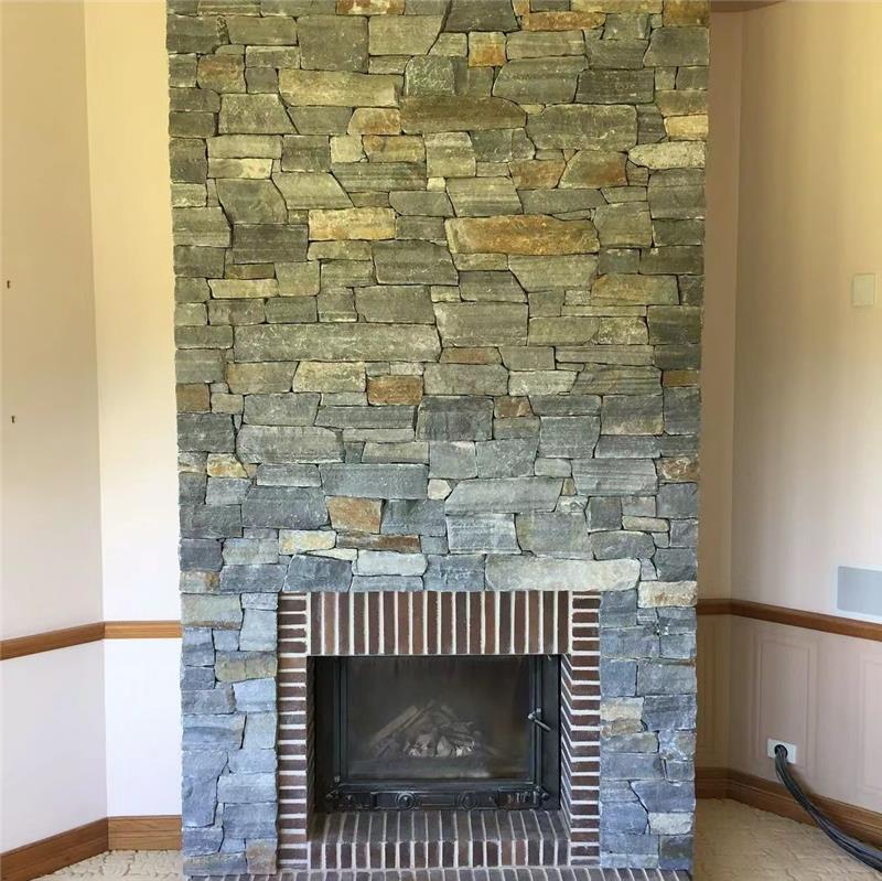 简约线条背景墙 灰色板岩碎拼石 绿石英文化石 天然乱石片