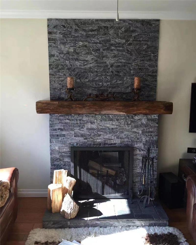 简约线条背景墙 灰色板岩碎拼石 绿石英文化石 天然乱石片
