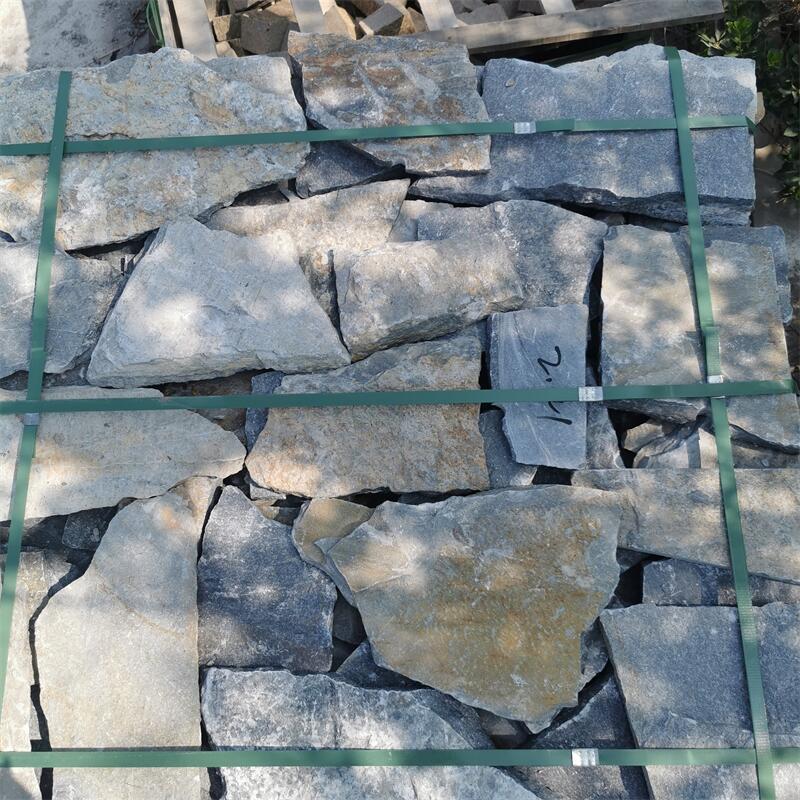 绿色文化石墙面砖 天然铺地片石 灰色文化石背景墙 毛石景观挡土墙有着天然纹理,更有层次感,由于长时间埋于地下经年风霜,面层比一般的花岗岩石皮更有质感,宛如加持历史的涂层,温婉圆润,做流畅弧形切割加工,对缝拼接安装,写意随形,呈现天作的美感,可应用在弯曲唐风日式小径铺贴。有别于常规石材切边方式,简约线条背景墙 灰色板岩碎拼石 绿石英文化石 天然乱石片采用不规则弧形线条,施工拼接对缝,营造自然原始景观。让您置身自然回归田野,让心灵得到放松,碎拼石又叫乱形板,不会每个料一模一样,都是天然润色,青色蘑菇石原石景墙 外墙面贴片石碎拼石 青灰色自然面文化石 青石板乱形石颜色要求不能太,同一批次可以挑一个色系的,不同批次的不能像大理石一样用色卡去规定。天然色差让装饰更有视觉效果。仿古文化石外墙砖 不规则片石片岩 灰色蘑菇石贴面 外墙贴片石碎拼石 尺寸每块成品控制在200mm-800mm以内,规格超大需要提前定制加工,增加成本。常规厚度有2-4、3-5、5-8、8-12公分厚左右,特别厚度需要定制