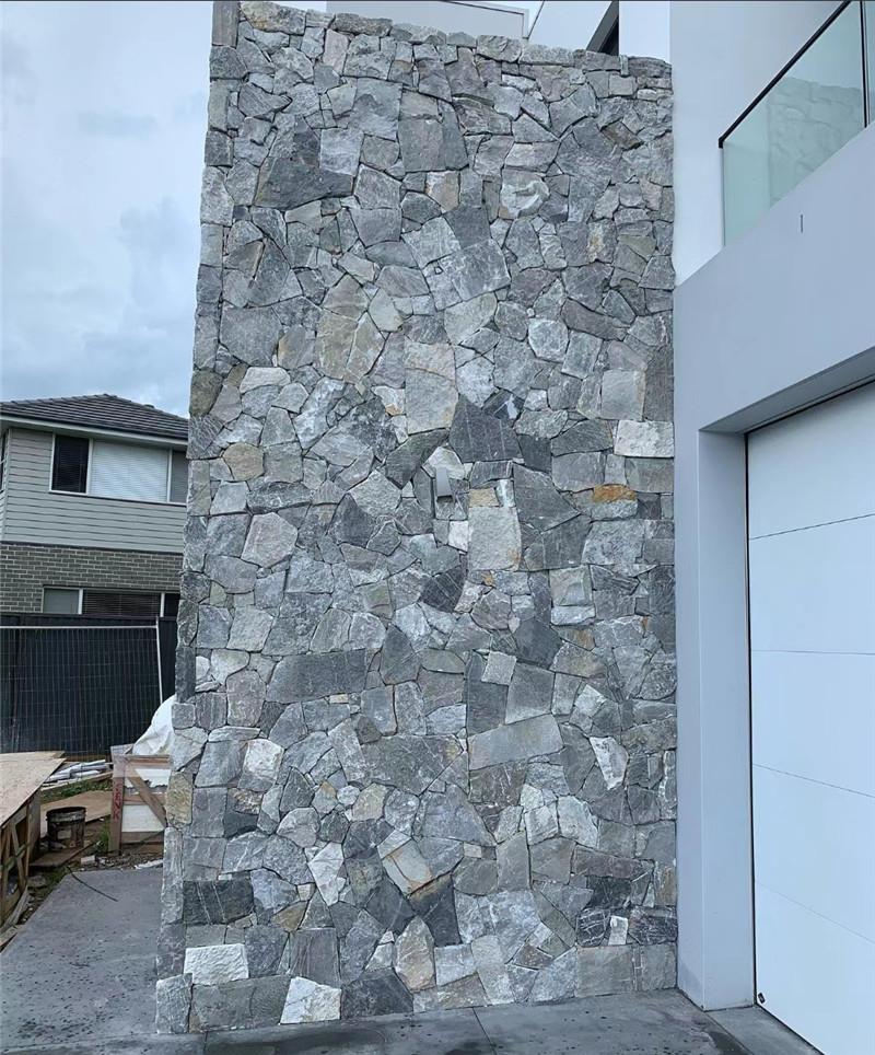 绿色文化石墙面砖 天然铺地片石 灰色文化石背景墙 毛石景观挡土墙有着天然纹理,更有层次感,由于长时间埋于地下经年风霜,面层比一般的花岗岩石皮更有质感,宛如加持历史的涂层,温婉圆润,做流畅弧形切割加工,对缝拼接安装,写意随形,呈现天作的美感,可应用在弯曲唐风日式小径铺贴。有别于常规石材切边方式,简约线条背景墙 灰色板岩碎拼石 绿石英文化石 天然乱石片采用不规则弧形线条,施工拼接对缝,营造自然原始景观。让您置身自然回归田野,让心灵得到放松,碎拼石又叫乱形板,不会每个料一模一样,都是天然润色,青色蘑菇石原石景墙 外墙面贴片石碎拼石 青灰色自然面文化石 青石板乱形石颜色要求不能太,同一批次可以挑一个色系的,不同批次的不能像大理石一样用色卡去规定。天然色差让装饰更有视觉效果。仿古文化石外墙砖 不规则片石片岩 灰色蘑菇石贴面 外墙贴片石碎拼石 尺寸每块成品控制在200mm-800mm以内,规格超大需要提前定制加工,增加成本。常规厚度有2-4、3-5、5-8、8-12公分厚左右,特别厚度需要定制