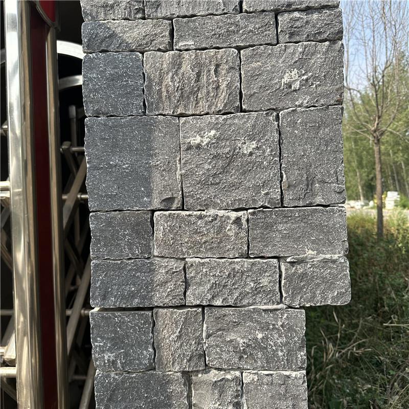 青色蘑菇石原石景墙 外墙面贴片石碎拼石 青灰色自然面文化石 青石板乱形石