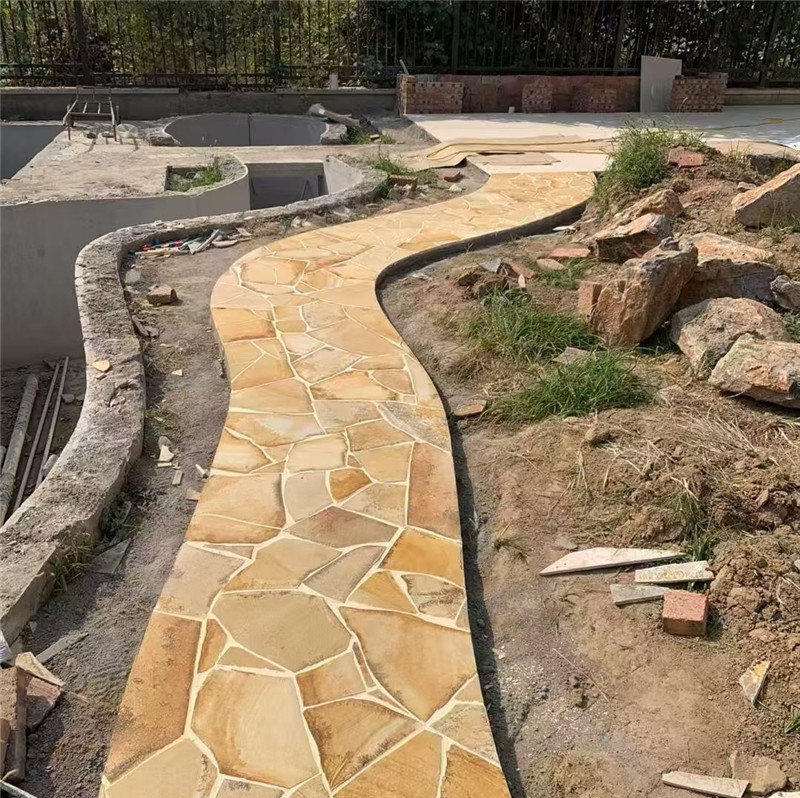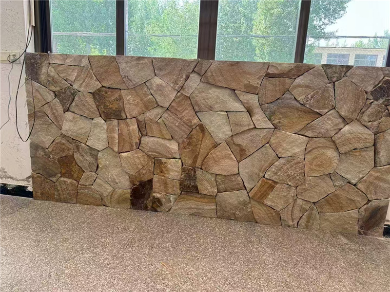 黄砂岩冰裂纹文化石 现代简约 黄色板岩铺地片石 黄木纹碎拼石以天然黄木纹砂岩或高品质仿石材料为原料,经破碎筛选制成保留木纹肌理的不规则碎块,凭借 “暖调黄色系 + 自然木纹肌理 + 碎拼灵动形态”,适配乡村风、新中式、自然系、美式田园等多种装饰风格。它区别于普通黄色碎拼石的单调质感与无纹理特性,以 “木纹自然感 + 暖调治愈力” 为空间注入温馨野趣,既能作为地面铺装、墙面点缀、景观造景的主材,又能通过碎拼组合划分空间功能,其特性与应用可从材质肌理、场景适配、搭配养护三方面展开,助力打造兼具自然质感与实用性的空间装饰。