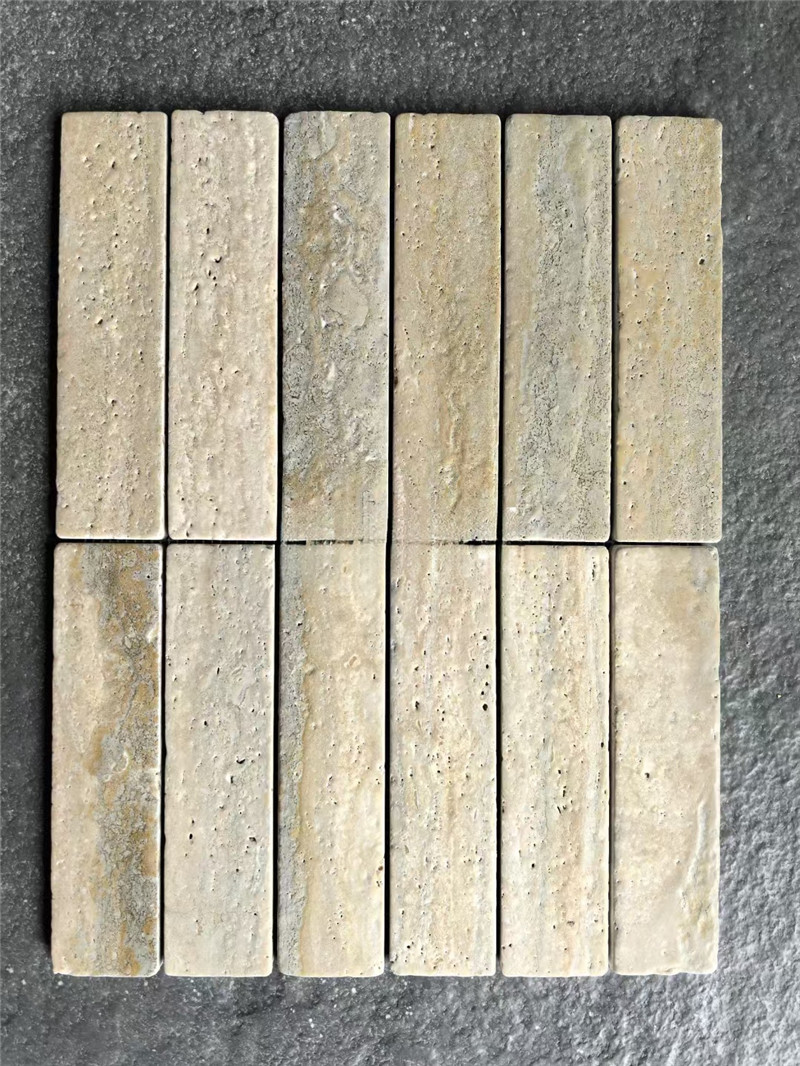 罗曼米黄皮革面 秋黄莱姆石小条石 米黄洞石拼花石材马赛克(又称米黄石灰石)是天然沉积岩类石材,源自远古时期碳酸盐矿物沉积,因形成过程中气体逸出留下天然孔洞,又因含微量铁元素呈现柔和米黄色调,凭借 “温润米黄基底 + 原生孔洞肌理”,适配新中式、现代简约、乡村风、禅意风等多种装饰风格。它区别于普通米黄色大理石的冷硬光亮与人工造孔石材的刻意感,以 “自然质感 + 柔和氛围” 为空间注入温馨松弛感,既能作为背景墙、地面铺装、景观构件的主材,又能通过孔洞与层理的天然细节传递自然温度,其特性与应用可从材质肌理、场景适配、搭配养护三方面展开,助力打造兼具美感与舒适度的空间装饰。