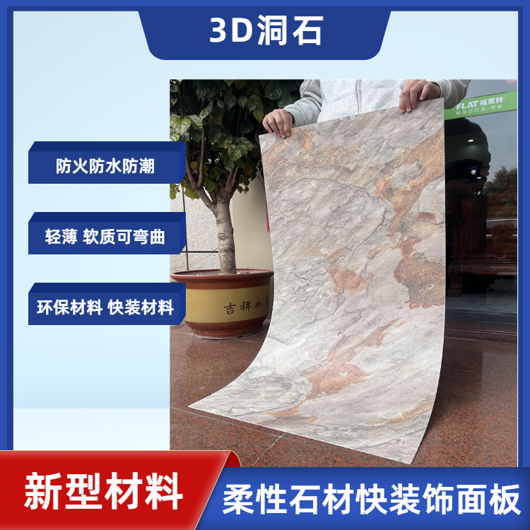 3D洞石柔性石材可弯曲防火装饰板