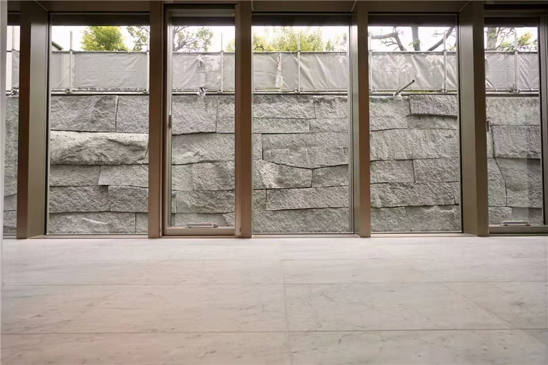 施工与养护需紧扣其薄型与原生特性,墙面铺贴前基层需找平并涂刷界面剂,增强粘结力,户外优先采用干挂法,通过不锈钢挂件固定,每平方米不少于4个挂件,确保安全稳固;室内轻负荷区域可采用薄贴法,瓷砖胶厚度控制在2-3毫米,避免透胶污染石皮表面。铺贴时需按石皮纹理自然排布,保留3-5毫米缝隙,用同色系柔性填缝剂填充,防止热胀冷缩开裂。养护方面,干燥后涂刷渗透型防护剂,户外每年补涂一次;日常用清水擦拭浮尘,顽固污渍用中性洗涤剂配合软毛刷轻刷,禁止使用酸性清洁剂,以免腐蚀石材肌理。灰色石皮板材的价值,在于用天然材质的本真,让装饰回归自然,为空间注入既沉稳又灵动的独特气质。