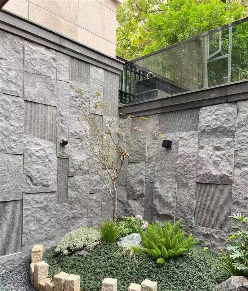 应用场景横跨室内外,风格适配性极强。在户外建筑中,别墅外墙用深灰色花岗岩石皮干挂,板材错落拼接,与白色窗框、灰色屋面搭配,营造简约大气的现代格调;中式庭院的影壁墙用青灰色板岩石皮铺贴,搭配月洞门与翠竹,传递“虚实相生”的造园意境。室内空间中,现代轻奢客厅的电视背景墙用浅灰色石灰岩石皮拼贴,边缘用金属线条收边,石皮的温润与金属的精致形成对比,提升空间质感;新中式茶室的墙面局部镶嵌灰色石皮,与原木茶桌、紫砂茶具组合,营造雅致静谧的品茗氛围。商业空间中,文创书店的墙面用灰色石皮装饰,咖啡馆的吧台立面用其点缀,都能传递自然质朴的品牌气质。