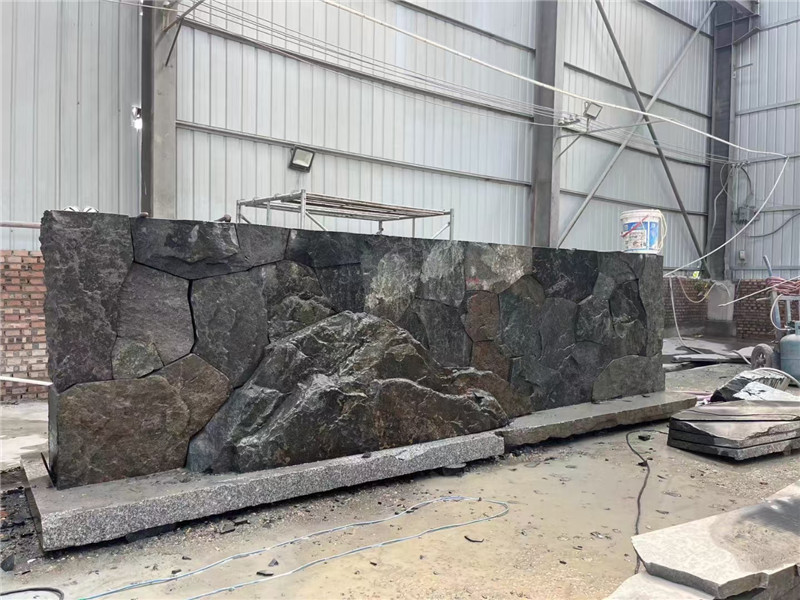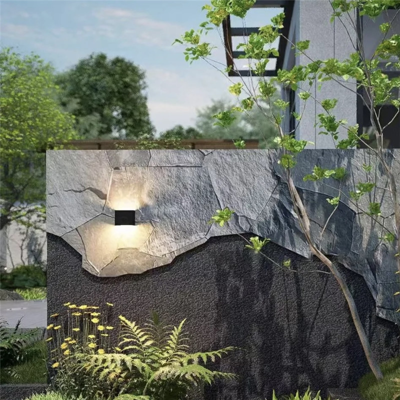 搭配技巧与养护要点是让黑石皮墙文化石出彩的关键。搭配上,色调需 “平衡深邃”:黑石皮的黑色可与浅灰、白色、原木色搭配,例如黑石皮墙面前摆放浅灰色布艺沙发,地面铺原木色地板,软装选择米白色,通过中性色缓解黑色的厚重;若想强化中式韵味,可搭配铜色金属元素(如铜色壁灯、铜色摆件),金属的精致提升黑石皮的质感。排版上,铺贴时需让石皮肌理自然过渡,避免纹理杂乱;缝隙用浅灰色勾缝剂,宽度控制在 3-5mm,既保留自然感,又避免缝隙过大积灰。养护方面,安装后 72 小时内涂刷渗透型石材防护剂,增强防水抗污能力;日常清洁用干布擦拭浮尘,轻微污渍用中性清洁剂 + 软毛刷清理,避免用酸性清洁剂或钢丝球,防止破坏石皮肌理;户外使用每年检查缝隙密封胶,若老化需及时补胶,确保长期耐用。