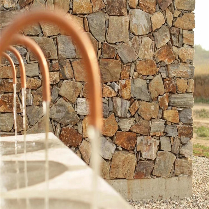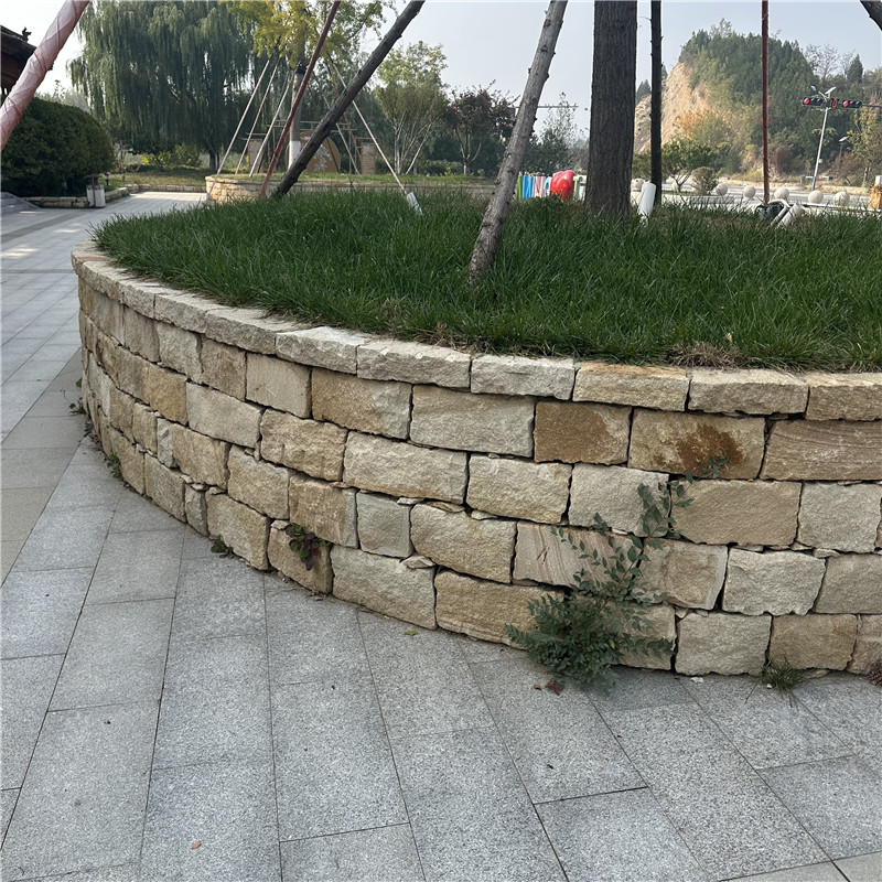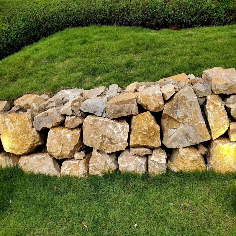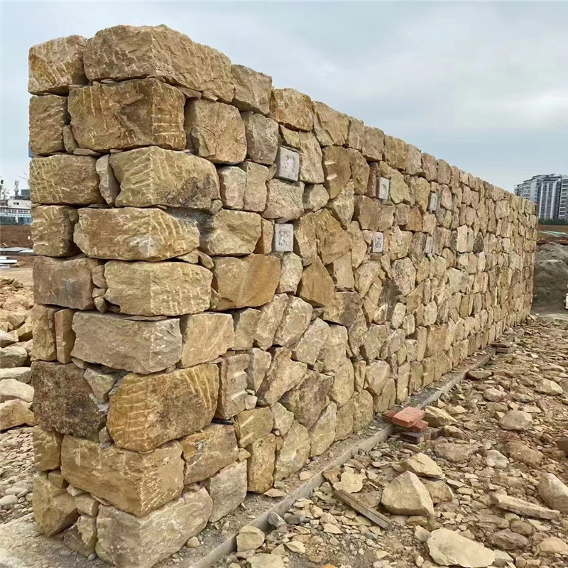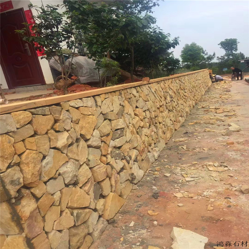 黄色块石垒墙石 柏坡凰景观石 建筑外墙 黄锈色板岩砌墙石是一款自带复古氛围感与自然野趣的天然砌筑石材,以天然锈色砂岩、锈板岩、含铁量较高的花岗岩为原料,经劈凿修整后保留大小错落、形态各异的原生轮廓,核心特质是石体以深锈色、浅锈色、棕锈色为基底,部分交织着暗红、土黄等渐变色调,表面因含铁矿物氧化形成独特的锈迹肌理,既有岩石的坚硬质感,又带着时光沉淀的复古韵味,凭借“锈色格调独特+质地坚韧+风格适配性强”的优势,成为乡村风、复古风、工业风、自然风场景的热门选材。其原料多为莫氏硬度5级以上的沉积岩或变质岩,主要成分为石英、长石及含铁矿物,密度适中、吸水率偏低,具备良好的抗压强度、抗冻融性与耐腐蚀性,能长期抵御户外风吹日晒、雨水侵蚀、土壤挤压及温度骤变,不易风化、开裂、褪色,适配北方严寒、南方潮湿等多数气候环境,广泛应用于民宿围墙、庭院景墙、复古建筑外墙、干砌挡墙、文创园区景观砌筑及花坛边界勾勒等多元场景,既能以复古锈调奠定空间温暖厚重的基调,又能凭借稳固质地发挥防护承重作用,实现“美学装饰、结构稳固、氛围营造”的三重统一。锈色垒墙石的核心魅力在于锈色肌理的自然感与适配性,复古锈调能与绿植、木质、金属等元素完美呼应,搭配藤蔓绿植可营造乡村田园氛围,搭配深色金属构件则强化工业复古格调,相较于常规色系垒墙石,其锈色自带故事感,能让建筑立面更具层次与记忆点,且经长期户外风化后,锈色会愈发温润有光泽,更显古朴韵味。根据砌筑需求可分为规整锈色垒墙石与自然形锈色垒墙石,规整款尺寸经初步校准,便于标准化浆砌施工,适合对平整度要求较高的外墙、围墙工程;自然形款保留完整原生轮廓,边缘粗糙自然,适配干砌工艺或景观性砌筑场景,凸显原生野趣。施工环节需贴合锈色垒墙石的材质特性与色调特点,提前做好基层处理,砌筑承重墙体时需夯实基底土层,浇筑混凝土垫层,高大墙体增设构造柱与拉结筋,强化整体承重与抗倾覆性;干砌挡墙则需铺设碎石垫层,保障透水性与基底稳固,避免后期沉降导致墙体变形。浆砌时选用与锈色适配的浅褐色、土黄色水泥砂浆,控制饱满度不低于80%,遵循“错缝搭接、上下咬合”原则,严禁出现通缝、空缝,防止雨水渗入影响稳固性;干砌则依托石块自身重力与咬合作用,按“上小下大、外斜内直”排布,缝隙可填充细沙、碎石或预留空隙,供苔藓、多肉等绿植生长,强化自然融合感。石缝宽度控制在2-4cm,填缝时需避免砂浆污染石材表面,若不慎沾染需及时清理,防止覆盖锈色肌理。日常养护需兼顾质感保护与结构稳固,用软毛刷或低压水枪清理表面灰尘、杂物,避免硬刷剐蹭破坏锈色肌理与原生质感;沾染油污、霉斑时,用中性清洁剂湿敷轻擦,严禁使用强酸强碱药剂,防止腐蚀石材导致锈色发乌、表面起砂。户外石材每2-3年涂刷一次透明渗透型防护剂,重点防护石缝与表面,既能提升抗污性与耐水性,又能锁住锈色光泽;定期检查墙体状况,及时修补松动石块、开裂缝隙与老化砂浆,北方冬季清除积雪积冰,避免冻融循环损伤结构,长久维持锈色垒墙石的复古质感与稳固性能。