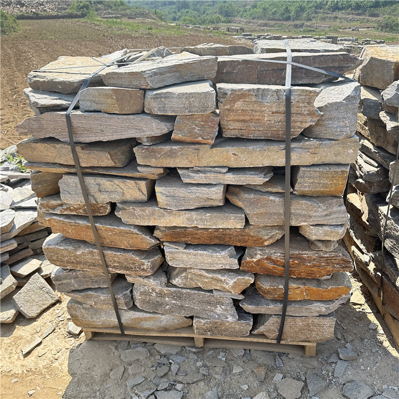 柏坡凰景观石 建筑外墙 黄锈色板岩砌墙石 黄色块石垒墙石是一款以天然黄砂岩、黄岗岩为原料,经劈凿、切割加工而成的块状石材,专为墙体砌筑设计,凭借温润的暖黄色调、规整的块状形态与优异的承重性能,成为庭院围墙、景观挡土墙、民宿外墙等场景的优选材料,既能以自然暖韵营造古朴雅致的氛围,又能满足墙体承重、防护的核心需求,实现装饰美学与实用功能的完美融合。其核心特质鲜明,石体以浅黄、金黄、棕黄等暖调为基底,部分交织着细微的褐纹、矿物斑点,表面保留原生岩石的粗糙肌理,边缘经适度修整更便于垒砌拼接,既区别于细碎石材的杂乱,又比光滑板材更具自然野趣,暖黄底色能与绿植、青砖、黛瓦等元素和谐共生,为空间注入温馨厚重的质感。作为垒墙专用石材,其物理性能表现优异,莫氏硬度可达5-6级,密度高、吸水率低,具备极强的抗压强度、抗冻融性与耐腐蚀性,能长期抵御户外风吹日晒、雨水冲刷、土壤挤压及温度骤变,不易风化、开裂、褪色,适配北方严寒、南方潮湿等多数气候环境,可承受墙体自身重量与外部冲击力,保障墙体长期稳固。规格适配性极强,按边长可分为小型块石(20-30cm)、中型块石(30-50cm)、大型块石(50-80cm),小型块石适合矮围墙、花坛边墙砌筑,操作灵活便捷;中型块石适配常规庭院围墙、景观墙,兼顾稳固与美观;大型块石用于挡土墙、高围墙底部承重部位,强化墙体承载力。部分块石可保留自然异形轮廓,用于景观墙局部点缀,增强设计感。加工环节以适配垒砌为核心,表面多处理为自然面、劈裂面,保留粗糙肌理以增强砂浆粘结力,避免光滑表面导致墙体松动;边缘经人工修边,去除尖锐棱角,既便于拼接对齐,又提升施工安全性,同时可根据需求定制倒角、开槽等工艺,适配不同墙体结构设计。应用场景聚焦户外墙体工程,可用于庭院围墙砌筑,搭配镂空设计或绿植攀爬,营造乡村风、新中式庭院氛围;可作为景观挡土墙材料,抵御土壤滑坡、雨水冲刷,兼顾实用与景观性;还可用于民宿外墙、园路侧墙等,以暖黄块石的原生质感打造特色建筑立面,适配复古风、自然风空间设计。施工环节需严格遵循垒砌规范,保障墙体稳固性,基层处理需夯实土层并浇筑混凝土垫层,防止后期沉降导致墙体倾斜;垒砌时采用错缝搭接方式,每块石块需摆放平整,缝隙控制在3-5cm,选用与黄色适配的米黄色、浅灰色水泥砂浆填充,确保砂浆饱满,增强石块间粘结力,必要时可在墙体内部增设钢筋加固,提升整体承重性能。施工中需及时清理块石表面残留砂浆,避免凝固后覆盖原生肌理,影响美观。日常养护简单便捷,定期用软毛刷、低压水枪清理表面灰尘、青苔,青苔易导致石块打滑,可选用中性除藻剂湿敷后清理,严禁使用强酸强碱药剂,防止腐蚀石材表面、弱化砂浆粘结力。定期检查墙体缝隙与石块松动情况,及时修补脱落砂浆、更换破损块石,北方冬季清除墙面积雪积冰,避免冻融循环损伤墙体结构,长久维持黄色块石垒墙石的暖黄质感与墙体稳固性,让装饰效果与实用性能长期在线。