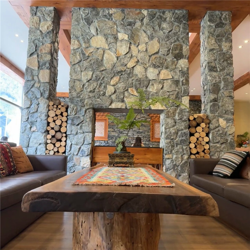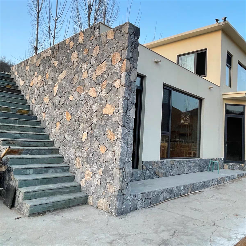 蓝石英碎拼石 仿毛石贴面石材 民宿背景 天然乱石片文化石是经自然风化、流水侵蚀或人工轻度劈凿而成的不规则石材碎片,以各类天然岩石为原料,无需刻意规整塑形,保留大小错落、薄厚不均、边缘粗糙的原生形态,凭借浑然天成的野趣肌理与百搭属性,成为景观装饰与复古风格营造的热门材料,既能以无拘无束的姿态还原自然本真,又能灵活适配多种场景,兼顾美学装饰与实用功能,广泛应用于室内外多元空间。其核心特质在于“原生无饰”,原料涵盖青石板、黄砂岩、板岩、火山岩等多种天然石材,色调随原料不同而丰富多元,青灰、褐黄、赤红、墨黑等色调交织,部分石片带着自然风化的斑驳痕迹、矿物纹理与细微孔隙,表面或粗糙干涩、或略带温润光泽,边缘无统一轮廓,有尖锐棱角也有圆润弧度,每一片乱石片都du一无二,拼接后无规整纹路,却能形成自然和谐的视觉效果,区别于规整石材的刻板,自带岁月沉淀的古朴气息与山野原生的灵动张力。作为天然石材制品,其物理性能随原料差异略有不同,整体莫氏硬度可达5-6级,密度适中、吸水率偏低,具备良好的抗压强度、抗冻融性与耐腐蚀性,能长期抵御户外风吹日晒、雨水冲刷、土壤挤压及温度骤变,不易风化、开裂、褪色,适配北方严寒、南方潮湿等多数气候环境,且耐磨耐刮,能应对日常使用中的轻微碰撞,实用性与耐久性兼具。规格无统一标准,按厚度可分为薄型乱石片(0.5-2cm)与厚型乱石片(2-5cm),薄型片适合墙面铺贴、局部点缀,重量轻且便于施工;厚型片适合地面铺砌、景观砌筑,承重性能更强;按粒径大小可灵活筛选,小尺寸石片用于缝隙填充、细节修饰,大尺寸石片用于主面铺设、造型勾勒,适配不同设计需求。加工环节极简,仅需经筛选、清洗、去锐处理,去除过于尖锐的边角以提升安全性,无需额外打磨抛光,最da程度保留原生肌理,部分场景可根据需求进行轻微做旧或封孔处理,增强抗污性,却不破坏自然质感。应用场景以户外景观为主、室内装饰为辅,户外可用于庭院步道铺地、景观景墙砌筑、花坛边界勾勒、溪流驳岸防护、假山造景点缀,薄型石片可干挂或湿贴于墙面,厚型石片可直接铺砌地面,拼接缝隙用细沙、碎石或苔藓填充,营造原生态庭院氛围;室内可用于复古风客厅背景墙、玄关地面局部铺设、阳台墙面装饰,以乱石片的野趣中和空间精致感,打造个性独特的装饰效果,适配新中式、自然风、工业风、乡村风等多种格调。施工环节需贴合其不规则特性操作,基层处理需确保平整坚实,户外地面铺砌前夯实土层,铺设碎石垫层增强稳定性,薄型石片铺贴选用石材专用胶,厚型石片可采用水泥砂浆固定,遵循“自然排布、错缝搭接”原则,无需刻意对齐边缘,保留石片原生形态的随机性,缝隙宽度控制在1-3cm,根据场景需求选用细沙、碎石或同色系填缝剂填充,户外优先选用透水填充料,避免雨水积聚。施工中需轻拿轻放,避免石片破损,及时清理表面残留胶渍与砂浆,防止污染原生肌理。日常养护简单便捷,定期用软毛刷、低压水枪清理表面灰尘、落叶与杂质,避免硬刷剐蹭破坏肌理;沾染油污、霉斑时,用中性清洁剂湿敷轻擦即可,严禁使用强酸强碱药剂,防止腐蚀石材表面。户外使用每2-3年检查一次铺设状况,及时修补松动石片与老化填充料,每3-5年涂刷一次耐候型透明防护剂,增强抗污性与耐水性,长久维持天然乱石片的原生野趣与自然质感,让装饰效果与自然环境无缝融合。