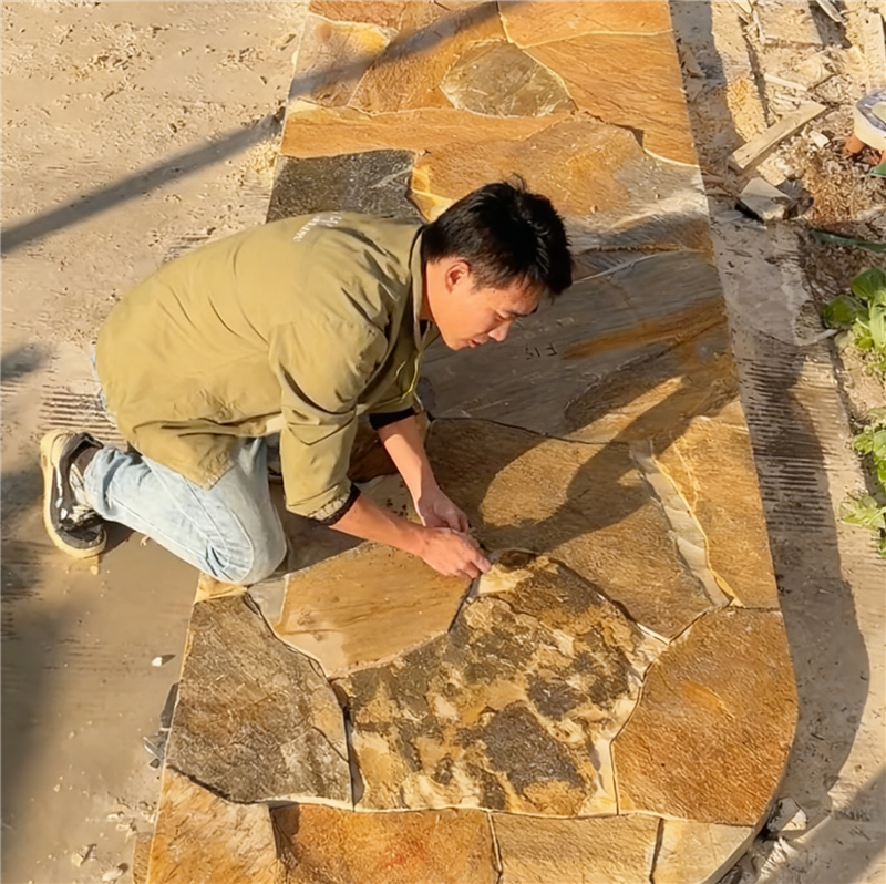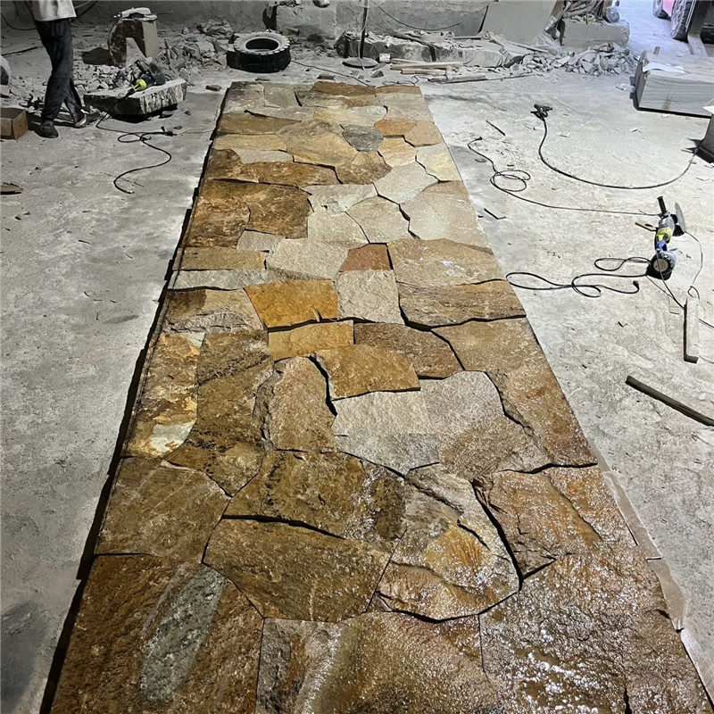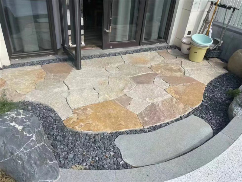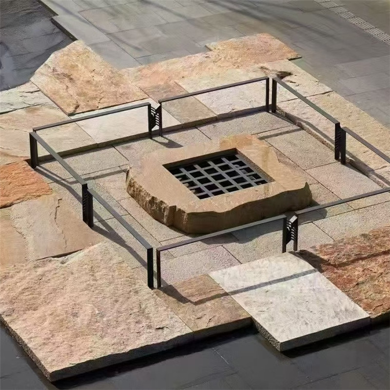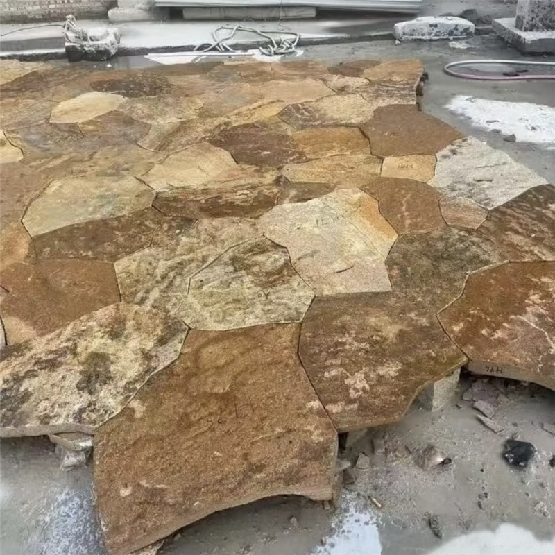 不规则花岗岩 景观平台 柏坡黄石皮文化石 锈色碎拼石板路是一种以天然含铁矿物石材为原料,经劈凿切割成不规则碎块,拼接铺设而成的步道景观,凭借温润厚重的锈色基调、自然错落的拼缝肌理与优异的耐候性能,成为复古风、自然风、乡村风庭院及景观园区的热门铺装选择,既能以岁月沉淀般的复古质感勾勒出独特步道意境,又能满足行人踩踏、户外耐候的核心需求,让步道既具装饰性又兼具实用性,与周边景观自然共生。其原料多选用含铁量高的板岩、砂岩、玄武岩等天然石材,经自然氧化或人工强化处理后,形成深浅不一的锈色色调,涵盖浅锈黄、深锈红、褐锈棕等多种层次,部分石板还保留着天然矿物纹路与氧化斑驳痕迹,锈色与石质底色相互交织,既不会过于沉闷,又能凸显复古韵味。作为步道专用石材,其物理性能表现出色,莫氏硬度可达5-6级,密度高、吸水率偏低,具备极强的耐磨性、抗冻融性与耐腐蚀性,能长期抵御户外风吹日晒、雨水冲刷及行人反复踩踏,不易风化、开裂、褪色,适配北方严寒冻融与南方潮湿多雨的气候环境,同时表面粗糙的原生肌理具备良好的防滑性能,有效规避雨天步道湿滑的安全隐患。铺砌工艺上,锈色碎拼石板路主打自然随性的排布风格,石板大小错落、形态各异,单块面积从几十到几百平方厘米不等,边缘保留自然劈凿痕迹,铺贴时遵循错缝搭接原则,无需刻意规整对齐,让拼缝自然蜿蜒、高低错落,如同大地自然开裂的纹理,缝隙宽度控制在1-3cm,可根据设计需求填充细沙、碎石,或预留缝隙嵌草,细沙填充简洁利落,嵌草则能让锈色石板与翠绿植被相映,强化原生态氛围,部分核心区域还可通过不同锈色深浅的石板搭配拼花,打造视觉焦点。应用场景极为广泛,可用于中式庭院曲径、乡村民宿步道,暖调锈色与黛瓦、原木、绿植搭配,营造出古朴静谧的休憩氛围;可铺设于文创园区、复古商业街步道,以锈色肌理呼应工业复古风,搭配金属标识、老物件装饰,提升空间格调;也可用于公园景观步道、别墅ru户小径,凭借自然质感弱化人工痕迹,让行人在行走中感受贴近自然的松弛感,甚至可延伸至室内阳台、玄关局部铺装,以复古锈色为空间注入自然气息。施工环节需重点保障步道稳固与排水顺畅,基层需先清理夯实,铺设碎石垫层与水泥砂浆找平层,防止后期沉降导致石板松动、高低不平,对于户外步道还需预留排水坡度,避免雨水积聚浸泡石材;铺贴时选用石材专用胶或水泥砂浆固定,确保石板贴合紧密、受力均匀,填充缝隙后及时清理石板表面残留胶渍与砂浆,避免凝固后覆盖锈色肌理与矿物纹路。日常养护相对便捷,定期用软毛刷、低压水枪清理表面灰尘、落叶与杂物,避免硬刷剐蹭破坏锈色表层;沾染油污、霉斑时,用中性清洁剂湿敷轻擦即可,严禁使用强酸强碱药剂,防止腐蚀石材、淡化锈色。户外使用每2-3年涂刷一次耐候型透明防护剂,保护石材表层与锈色质感,定期检查石板松动、缝隙填充料脱落情况,及时修补更换,长久维持锈色碎拼石板路的复古韵味与步道稳固性。