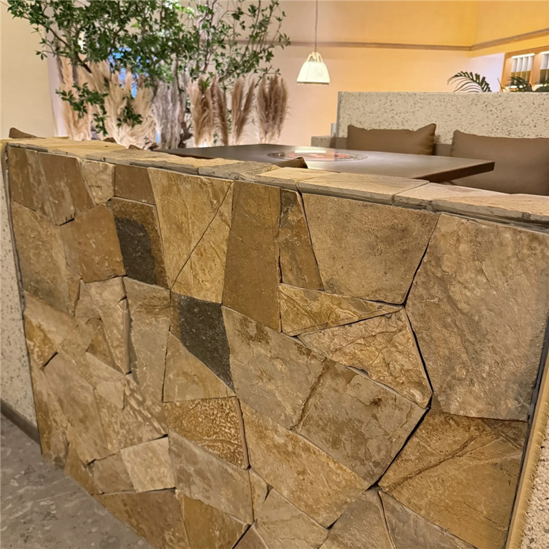 在空间应用中,柏坡黄石皮文化石适配多元场景。于中式庭院,它可作为照壁、围墙的主材,暖黄的石色与黛瓦、朱红门窗相映成趣,重现 “黄墙黛瓦” 的传统美学意境。在民宿、农家乐等休闲场所,以其铺设的外墙搭配木质格栅与绿植,能营造出温馨质朴的田园氛围。而在现代商业空间,如文化创意园区、艺术展馆,柏坡黄石皮文化石可与玻璃幕墙、金属框架结合,粗犷的石质纹理与冷峻的现代材质形成对比,碰撞出复古与时尚交融的独特魅力。此外,这种文化石还承载着深厚的历史文化内涵,用于红色主题展馆、革ming纪念馆等建筑时,暖黄色调象征ge命精神的炽热,石皮纹理恰似历史的印记,使墙面成为传递文化记忆的载体。