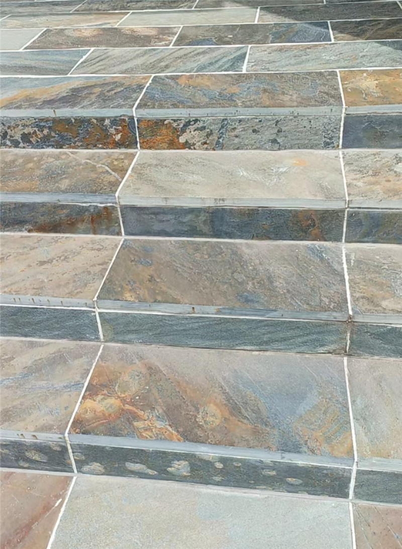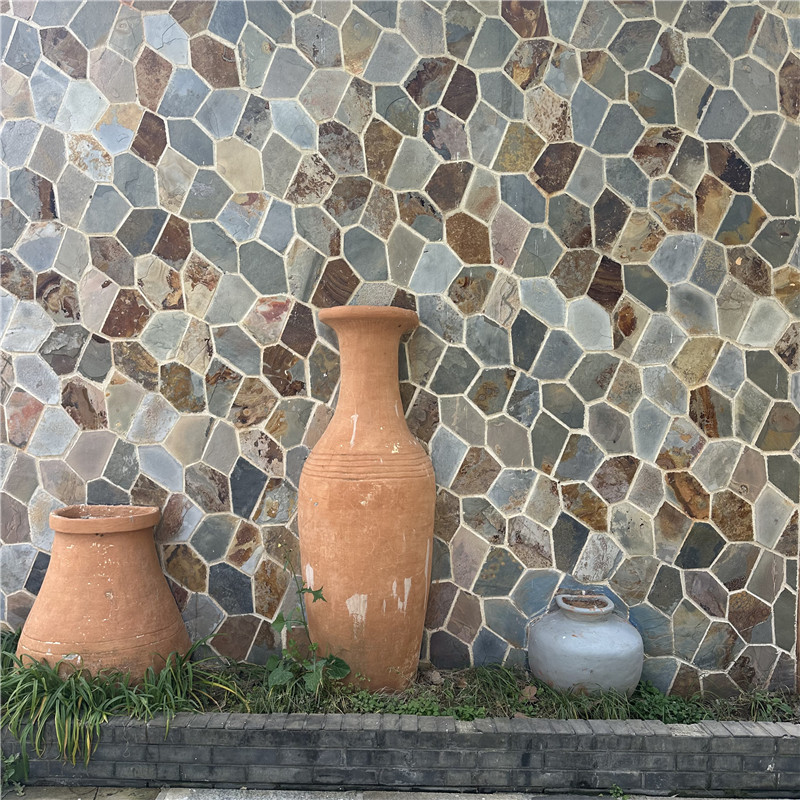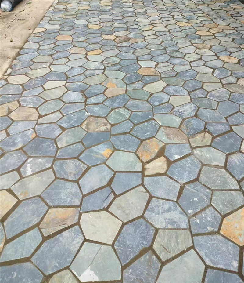 绿色冰裂纹文化石 庭院饰面 园林绿化石材 青锈色板岩碎拼石是园林绿化中极具氛围感的天然装饰石材,以青灰为基底、泛着自然锈色纹路,多取自含铁矿脉的花岗岩、砂岩经人工破碎筛选而成,表面保留原生断裂肌理与不规则棱角,青锈交织的色调自带岁月沉淀感,既兼具石材的坚韧耐磨,又以碎拼工艺的随性错落契合园林生态氛围,成为新中式园林、自然野趣园、水景景观等绿化场景的优选材料,让青锈肌理与绿植、流水、草坪完美融合,提升园林空间的复古感与层次感。其原料多源自you质矿脉,花岗岩款青锈碎拼石莫氏硬度达6-7级,抗压强度超100MPa,抗冻耐磨、抗紫外线与抗腐蚀性能优异,能抵御北方-30℃冻融循环与南方酸雨侵蚀,适配户外步道、水景驳岸等高频使用区域;砂岩款青锈碎拼石质地温润透气,青锈纹路更显细腻柔和,与绿植根系相容性佳,适合花池边缘、庭院角落砌筑,经日晒雨淋后青锈色泽愈发醇厚,使用寿命可达数十年,且无放射性污染,符合园林绿化生态环保标准。青锈色碎拼石的核心魅力,在于青灰基底与锈色纹路的共生共鸣及碎拼工艺的野趣表达,青锈色调既不张扬又能形成视觉焦点,区别于常规灰白石材的单调,锈色纹路如同自然风化的痕迹,为园林注入复古韵味;碎拼时遵循“错缝交织、大小互补、深浅呼应”原则,大块碎石奠定骨架,小块碎石填补缝隙,让青锈肌理自然延展,石缝宽度控制在3-5mm,可搭配细沙、苔藓或播撒草籽,实现石绿共生的生态效果,适配园林自然化营造需求。在园林绿化场景中,其应用灵活且氛围感突出,新中式园林中,可铺筑蜿蜒步道,搭配青瓦景墙、翠竹流水与白砂造景,青锈肌理与中式元素相融,传递出温润空灵的禅意;自然野趣园里,可砌筑花池边缘、挡土墙,与原生绿植、野sheng花卉搭配,青锈色调模拟山野岩石质感,强化自然原生氛围;水景景观区域,可铺设亲水平台、砌筑驳岸,青锈肌理与流水相互映衬,锈色纹路在水汽浸润下更显灵动,同时花岗岩材质耐水抗腐,适配水景潮湿环境。此外,还可用于园林入口、景观节点局部点缀,与置石、藤蔓植物搭配,打造复古雅致的视觉焦点,适配多种园林风格的氛围感营造。园林绿化应用中,施工与选型需兼顾适配性与实用性,选型时根据场景特性选择材质,高频行走区域优先选花岗岩款,花池、角落等区域可选用砂岩款;北方寒冷地区需重点核查抗冻性能,南方多雨地区需做好基层排水设计。施工前需按青锈色泽深浅、肌理粗细分类预铺,避免色差突兀,基层需夯实找平并浇筑混凝土垫层,户外铺装预留2%-3%排水坡度,防止积水浸泡导致碎石松动、返碱。铺贴时采用对应石材专用柔性胶泥,花岗岩款选用花岗岩胶泥,砂岩款选用砂岩胶泥,避免传统水泥砂浆腐蚀石材;填缝优先选用同色系细沙或生态填缝材料,强化园林自然感。日常养护需贴合园林绿化户外环境,定期清理石缝内枯枝落叶、杂草,避免堵塞排水;沾染污渍用中性清洁剂轻刷冲洗,禁止使用酸性试剂,以免腐蚀青锈肌理与石材质地;每年涂刷一次渗透型防护剂,增强抗污、抗风化能力,确保青锈色泽与原生肌理在园林环境中长久保持zui佳状态,持续为绿化景观赋能。