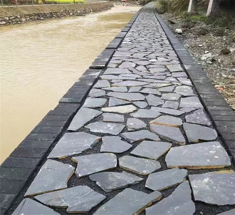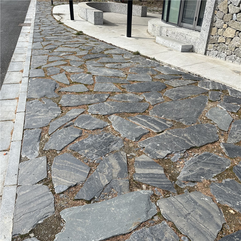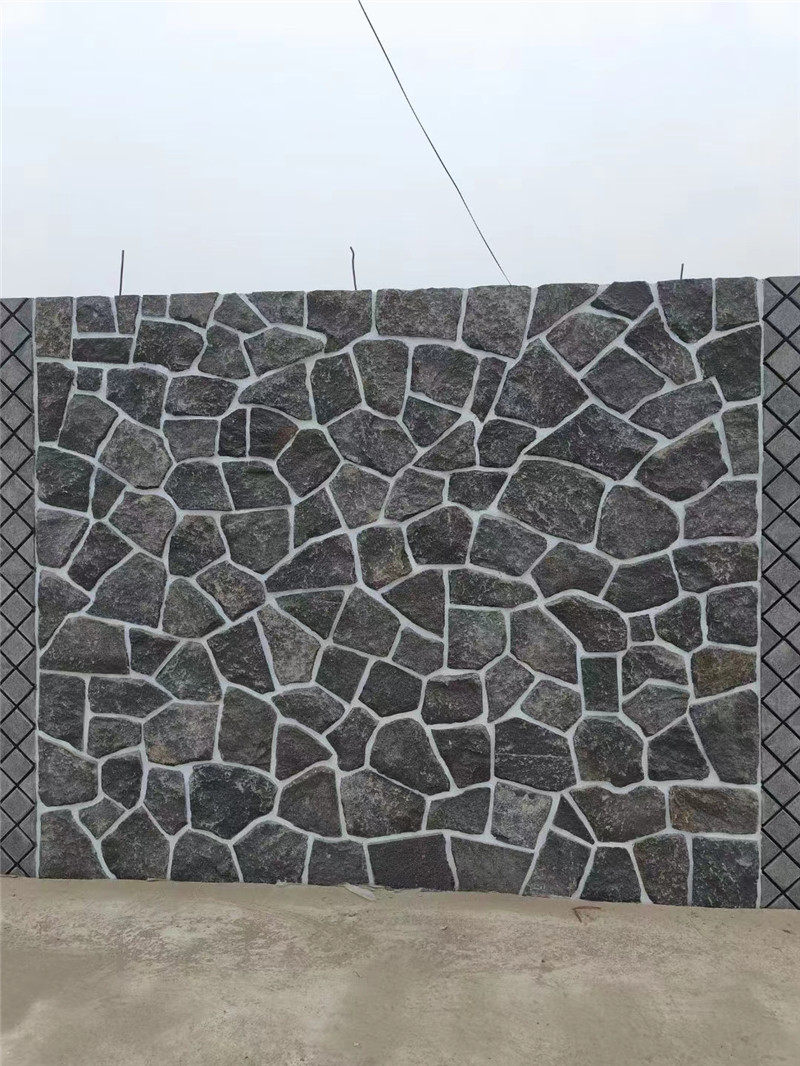 深黑色流水石 背景墙 地面文化石铺贴 黑色乱型板碎拼石是一款兼具高级质感与自然野趣的天然装饰石材,以天然板岩、花岗岩、玄武岩等为原料,经劈凿、切割加工成大小错落、形态各异的不规则碎块,拼接后形成浑然天成的视觉效果,核心特质是石体以纯黑、墨黑、深灰黑为基底,部分带有细微的白色矿物斑点、金属光泽或原生层理纹路,既凭借深邃色调营造沉稳大气的空间氛围,又以乱形排布打破传统装饰的规整单调,兼具低调奢华与自然粗犷的双重气质。其原料多为莫氏硬度6-7级的坚硬岩石,主要成分为石英、长石、玄武岩矿物,密度高、吸水率极低,具备极强的耐磨性、抗冻融性、耐腐蚀性与抗碾压性,能长期抵御室内外复杂环境的侵蚀,适配北方严寒、南方潮湿、滨海盐雾等多种气候条件,既可用作室内背景墙、地面局部、玄关点缀等装饰场景,也能广泛应用于户外庭院小径、景观平台、民宿外墙、文创园区铺地、挡土墙局部等工程,凭借“色调百搭+性能优异+风格适配性强”的优势,成为工业风、新中式、极简风、复古风等多种装修风格的热门选材,既能作为空间主材质奠定沉稳基调,也能局部点缀提升细节层次,实现美学装饰与实用性能的双重价值。黑色碎拼石的核心魅力在于色调与肌理的碰撞,深邃的黑色能有效衬托周边绿植、金属、灯光等元素,让空间层次更鲜明,尤其在光影映射下,石材表面的原生肌理与碎拼缝隙形成丰富的明暗对比,进一步强化空间的艺术张力。相较于其他色系碎拼石,黑色款更显耐脏易打理,日常使用中不易显现灰尘与轻微污渍,适配高频通行与公共空间场景。选用时需结合场景需求挑选材质,花岗岩、玄武岩黑色碎拼石硬度更高、耐候性更强,优先用于户外高频通行、强冲刷场景;板岩黑色碎拼石肌理更细腻、纹路更独特,适合室内装饰与景观性户外场景,能营造静谧雅致的氛围。施工环节需jing准适配黑色碎拼石的材质特性与形态,提前做好基层处理,户外地面需夯实土层,铺设碎石垫层与混凝土稳定层,防止后期沉降导致碎块松动、缝隙变形;室内地面做好防潮处理,墙面需找平压实并涂刷界面剂,增强粘结力。铺贴前必须现场预排,按碎块大小、色调深浅、肌理差异自然组合,遵循错缝搭接、疏密有致的原则,确保整体衔接流畅,避免出现规整纹路或色调突兀的问题,黑色碎拼石对缝隙处理要求更高,石缝宽度控制在2-3cm,室内可选用同色系黑色填缝剂填充,弱化拼接痕迹;户外可选用细沙、碎石填充,增强透水性,也可搭配白色填缝剂形成黑白对比,强化视觉冲击。铺贴采用石材专用胶薄贴法或水泥砂浆粘贴,控制粘结材料饱满度,防止空鼓,施工中需及时清理石面残留胶渍、砂浆,避免凝固后影响黑色石材的纯净质感,必要时可提前对石材进行预防护处理,降低污渍渗透风险。日常养护需遵循“温和清洁、重点防护”的原则,避免用硬刷剐蹭或尖锐工具划伤,防止破坏石材肌理与光泽;日常用软毛刷、湿布或低压水枪清理灰尘、杂物,沾染油污、霉斑等顽固污渍时,用中性清洁剂湿敷10-15分钟后轻柔擦拭,随后用清水冲洗干净并擦干,严禁使用强酸强碱药剂,防止腐蚀石材导致色调发乌、表面起砂、斑点脱落。户外使用每2-3年涂刷一次耐候型透明防护剂,室内每1-2年补涂一次,重点防护石材表面与缝隙,提升抗污性与耐候性;定期检查铺贴状况,及时修补松动碎块、开裂缝隙与老化填缝剂,北方冬季需清除积雪积冰,避免冻融循环损伤石材结构,长久维持黑色碎拼石的深��质感与美观度,让空间格调与实用性能长久共存。