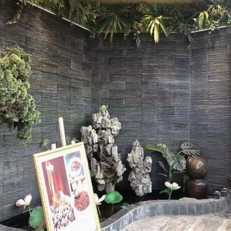 黑色乱型板碎拼石 深黑色流水石 背景墙 地面文化石铺贴是将天然文化石(含花岗岩、砂岩、火山石、碎拼石等品类)通过科学工艺固定于地面基层,实现自然肌理与实用功能融合的装饰工序,核心在于兼顾石材原生质感与地面承重、防滑、耐久需求,需结合石材特性、场景环境、风格需求把控全流程细节,既还原文化石的野趣雅致,又保障地面铺贴的牢固性与安全性,广泛适用于庭院步道、户外平台、民宿玄关、工业风室内等多元场景。铺贴前需做好前期筹备工作,核心在于石材筛选与基层处理,石材需按品类、色泽、肌理分类筛选,碎拼石需搭配大小规格,确保铺贴后错落有致且色差协调,花岗岩、火山石等硬质石材需提前切割修整边缘,避免尖锐棱角影响行走;砂岩、莱姆石等软质石材需提前做密封防护处理,防止铺贴时吸潮返碱、沾染污渍。基层处理是铺贴牢固的关键,需先清理地面杂物、浮尘,再浇筑10-15cm厚混凝土垫层并夯实找平,确保基层坚实无空鼓、平整度误差控制在3mm内,户外场景需预留2%-3%排水坡度,避免积水浸泡石材与基层,潮湿区域(如亲水平台、卫生间)还需额外做防水卷材铺设,防止水分渗透导致基层老化、石材松动。铺贴过程需按“预铺定位—粘结固定—填缝修整”三步推进,预铺阶段需根据石材纹理、大小自然排布,碎拼石遵循“错缝交织、大小互补”原则,规整文化石按纹理走向连贯衔接,标记定位线确保整体排版美观,同时预留3-5mm石缝,兼顾热胀冷缩需求与美学效果。粘结环节需选用适配石材的专用胶泥,硬质石材(花岗岩、火山石)选用花岗岩柔性胶泥,软质石材(砂岩、莱姆石)选用砂岩专用胶泥,避免传统水泥砂浆腐蚀石材,胶泥均匀涂抹于石材背面,厚度控制在3-5mm,确保粘结全面无空鼓,铺贴后轻敲石材调整平整度,与相邻石材高度差不超过2mm。填缝阶段需待胶泥凝固(通常24小时)后进行,户外场景选用抗冻、耐磨的环氧填缝剂或同色系细沙,室内场景可选用哑光填缝剂,填缝时确保缝隙饱满,多余填缝料及时清理,避免污染石材表面,碎拼石可在石缝间嵌入苔藓、小型绿植强化野趣,极简风格则可选用与石材近色填缝剂弱化缝隙存在感。不同场景与石材品类需针对性调整工艺,户外庭院步道选用荔枝面、火烧面文化石,强化防滑性能,铺贴时增加胶泥用量与固定点,防止人流踩踏导致松动;室内玄关、客厅选用哑光面、自然面文化石,注重纹理衔接与空间格调融合,可采用局部铺贴或边界收边处理,提升精致度;北方寒冷地区优先选用抗冻性强的花岗岩、火山石,填缝剂选用低温抗裂款,避免冻融循环导致石材开裂、填缝脱落。铺贴后养护工作直接决定使用寿命,养护初期(1-3天)禁止行人踩踏、重物碾压,保持地面干燥通风,避免胶泥与填缝剂未完全凝固受力变形;日常养护需定期清理石材表面灰尘与缝隙杂物,户外石材可高压水枪冲洗,沾染油污时用中性清洁剂轻刷,禁止使用酸性试剂,以免腐蚀石材肌理与防护层。硬质石材每年涂刷一次渗透型防护剂,软质石材每半年养护一次,增强抗污、抗风化能力,户外场景需定期检查石材牢固度,及时修补松动、开裂石材,确保地面长期保持美观与实用性能。地面文化石铺贴的核心是平衡工艺规范与自然美学,通过jing准把控前期筹备、铺贴流程、后期养护各环节,让文化石的原生肌理完美落地,同时满足不同场景的实用需求,打造兼具野趣质感与耐久性能的地面空间。