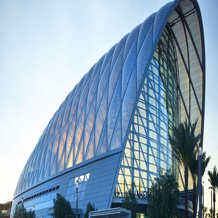 在体育设施方面,它常用于大型体育场的看台顶篷、体育馆的屋顶、游泳馆、网球馆和健身中心等,能够覆盖巨大的无柱空间。