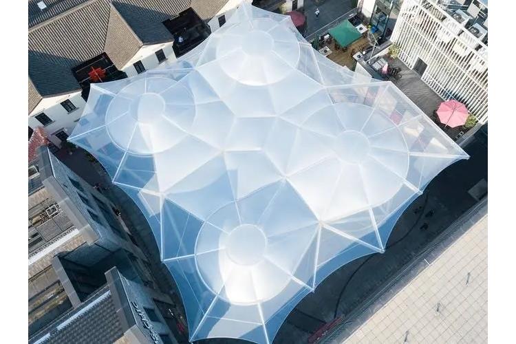 这些特点使膜结构成为景区入口、广场、观景台等场所的理想选择,兼顾美观性、功能性与可持续性。