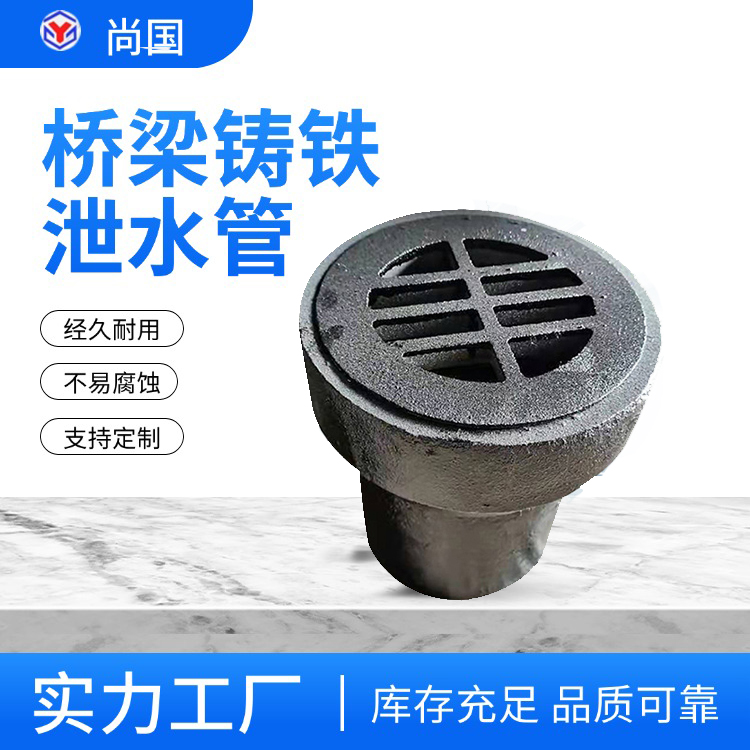 特点一:桥梁铸铁泄水管该产品具有无味、防腐蚀、抗老化、耐侯性好等诸多特点,是以铁为主要原料,浇筑成型的铸铁制品。