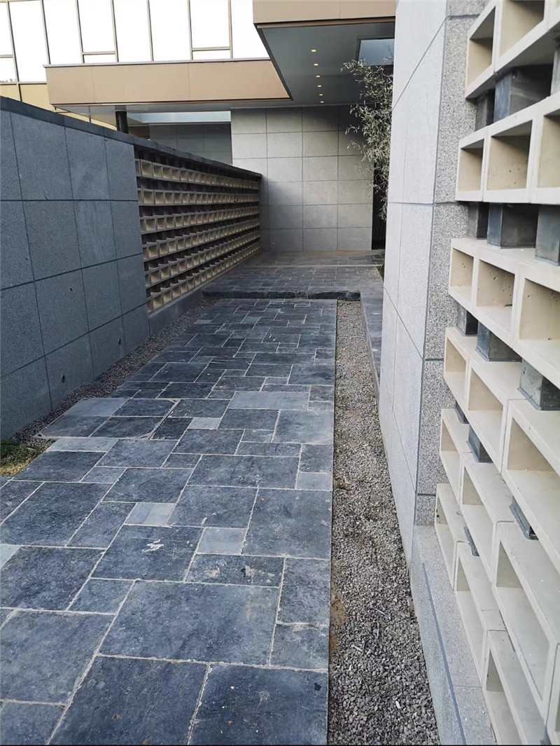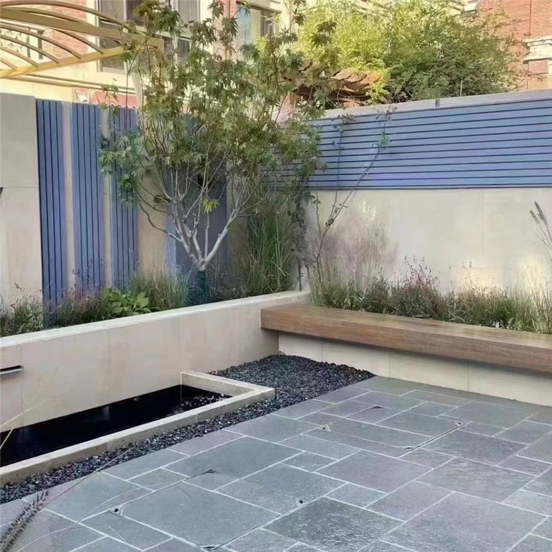 在场景应用中,海洋蓝莱姆石凭借 “清新蓝调 + 实用属性”,成为室内外空间的 “雅致焦点”。室外场景里,它是打造自然与度假风格的理想材料:庭院水景驳岸装饰时,选用中海蓝莱姆石乱形石,沿水岸线堆叠保留自然缝隙,水流漫过石面时,蓝色石材与水体形成 “水石交融” 的视觉效果,搭配白色鹅卵石、水生睡莲与木质栈道,营造 “地中海小院” 的度假氛围;现代风民宿外立面局部铺贴时,采用浅海蓝莱姆shi平板(哑光面),与白色真石漆、原木门窗搭配,蓝色肌理打破墙面单调,传递 “海边民宿” 的松弛感;庭院步道铺装时,用深海蓝莱姆shi平板(防滑处理)按错缝工艺施工,缝隙填充浅灰色勾缝剂,搭配蓝色花箱、白色藤椅与绿植,凸显 “自然雅致” 的庭院格调。