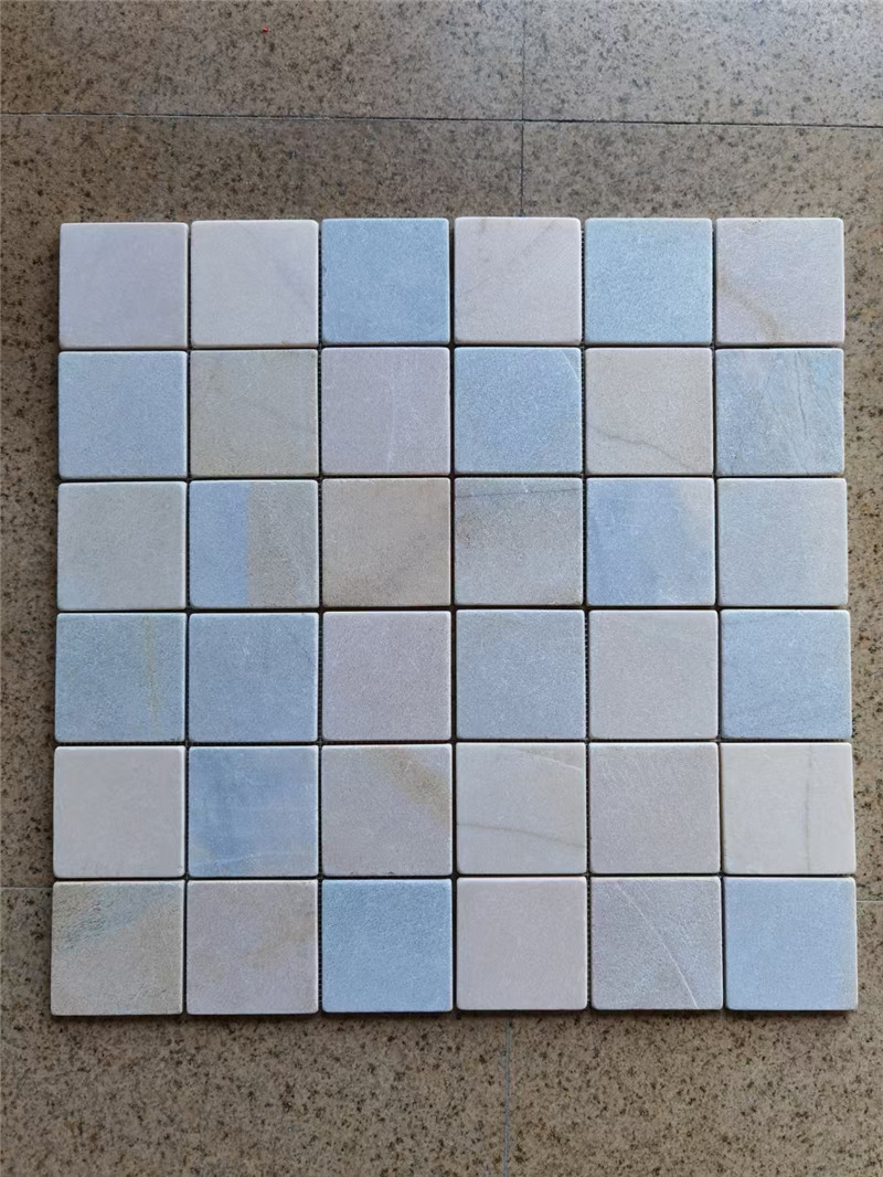 室内场景中,海洋蓝莱姆石适配多元功能区域需求:地中海风客厅电视背景墙满贴时,选用中海蓝莱姆shi平板(柔光面),搭配白色乳胶漆墙面、原木电视柜与蓝色布艺沙发,蓝色石材与软装形成呼应,瞬间营造 “海边客厅” 的清新氛围;现代简约风餐厅墙面局部铺贴时,采用浅海蓝莱姆石文化石,中间嵌入木质置物架,摆放白色陶瓷餐具与绿植装饰,蓝调肌理与中性色基底平衡,传递 “简约高级” 的用餐氛围;新中式茶室地面铺装时,用深海蓝莱姆石ping板(哑光面),搭配浅灰色实木茶桌、青瓷茶具与暖光壁灯,蓝色的沉稳与中式元素的雅致融合,凸显 “禅意清新” 的气质;此外,还可用于卫生间台面与墙面,选用密封处理的中海蓝莱姆石,台面边缘做圆弧处理,墙面按 “小块密铺” 工艺施工,搭配白色卫浴洁具与浅灰色环氧美缝剂,蓝色石材提升空间精致度,同时隐藏轻微水渍,兼顾美观与实用。