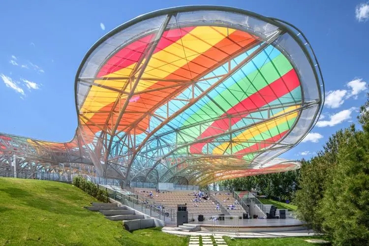 演艺中心与剧场: 露天剧场、音乐厅的看台顶棚或广场上的舞台顶盖常用膜结构。其良好的声学性能(可通过内部设计进行调节)和艺术造型,适合文化类建筑。