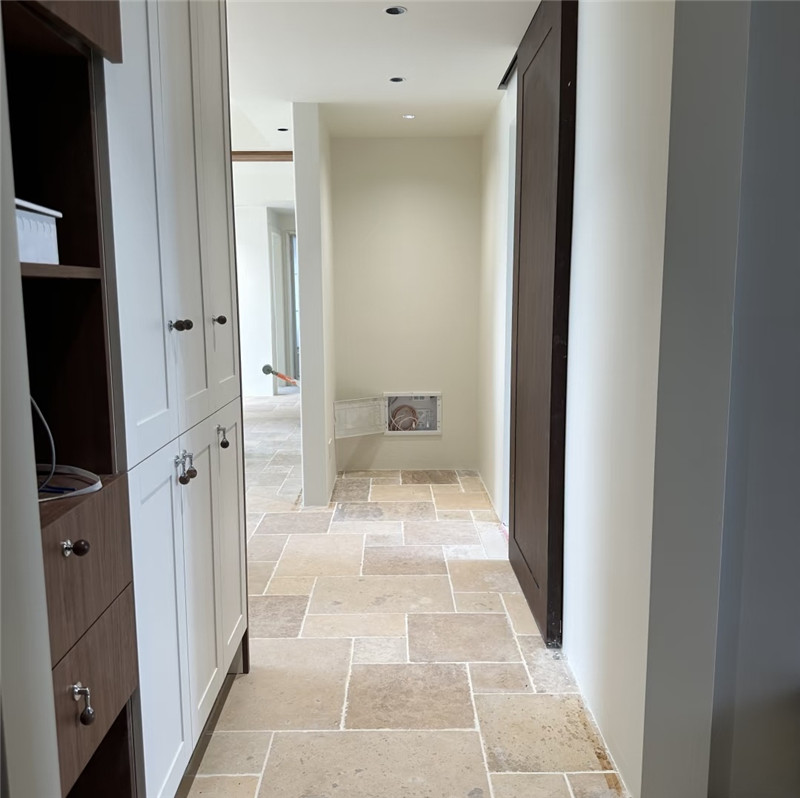 室内地面:客厅、玄关、卧室大面积铺贴,柔光不反光、防滑耐磨,脚感温润,提升全屋质感基调。
