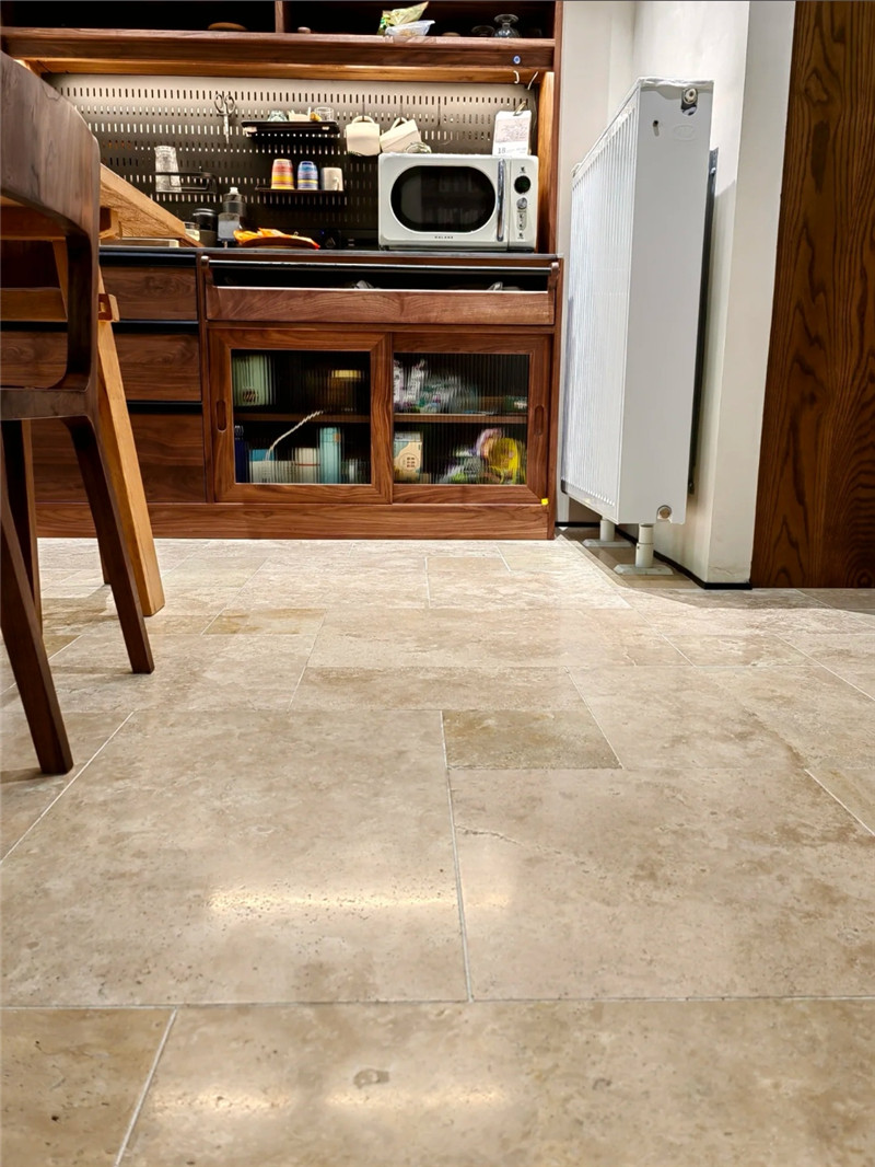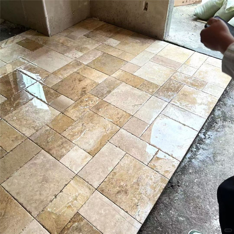 施工:铺贴前做六面渗透防护,封闭微孔防返碱、防污;缝隙建议用同色系暖金或浅棕填缝剂,保持整体质感统一。
