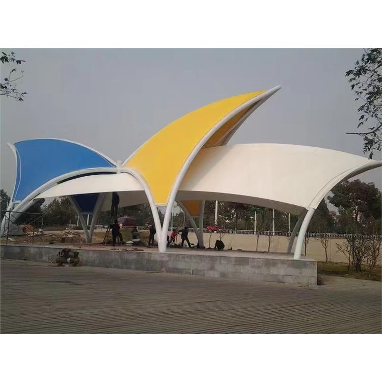 具备优良的遮阳、挡雨、耐候性能,部分膜材还有自洁性(如PTFE涂层),减少维护成本;大跨度设计能创造开阔的休闲空间,适合游客集散、观景等用途。